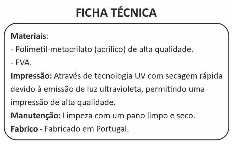 Material | EVA, Polimetil-metacrilato (acrílico) de alta qualidade |