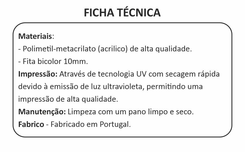 | Zona de Personalização | Frente, Frente e Verso, Verso |