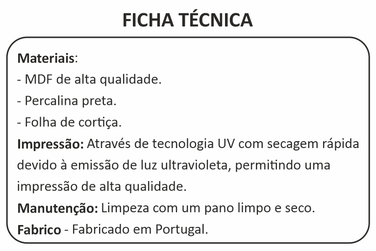Materiais: MDF, Folha de Cortiça e Percalina Preta