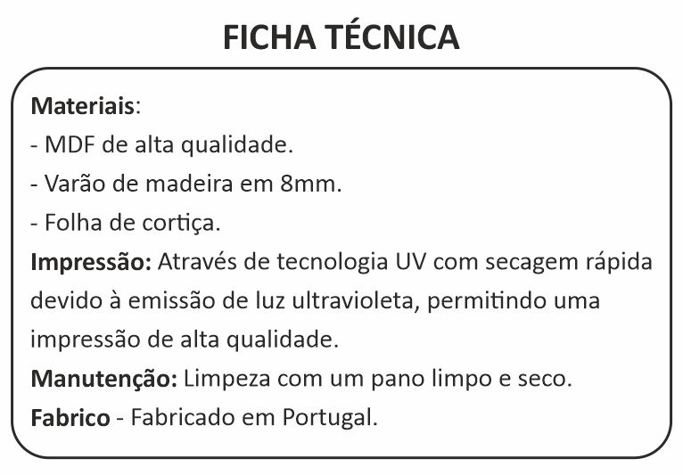 Material | Folha de Cortiça, MDF |